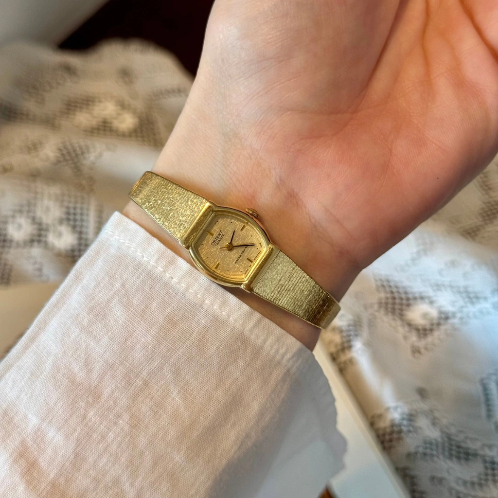 Orient Japan Quartz, modelo dos anos 90. Funcionando perfeitamente, em estado de novo! Teve o banho de ouro refeito e está com bateria nova. A caixa é delicadíssima e mede apenas 10mm. Modelo do fabricante E45CS4-20 CS, resistente à água.